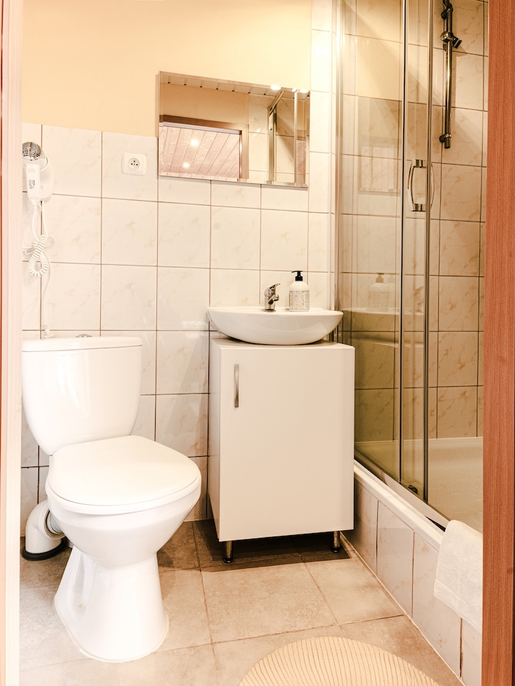 Dysponujemy pokojami 2, 3, 4 – osobowymi, każdy z łazienką.
